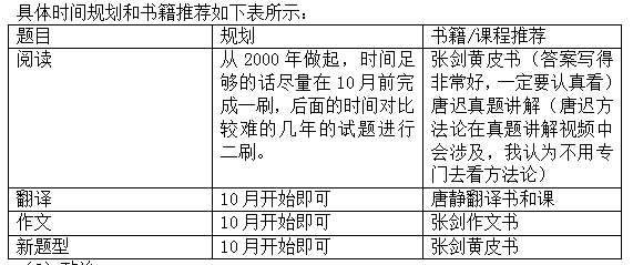 政治其实比较适合突击,9月开始看徐涛的强化课并配上1000题,临考前背背肖四肖八就差不多了,这里不建议花上太多时间放在政治上,性价比不太高,而且老师相对于政治会更加喜欢英语分数高的学生。