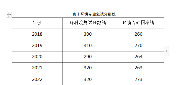 环科院的复试分数线一般来说不会划得特别高,按照往年的经验,一般是学校的工科自划线,不会再另划院线。在下表中我给出了历年来的学校的复试分数线。