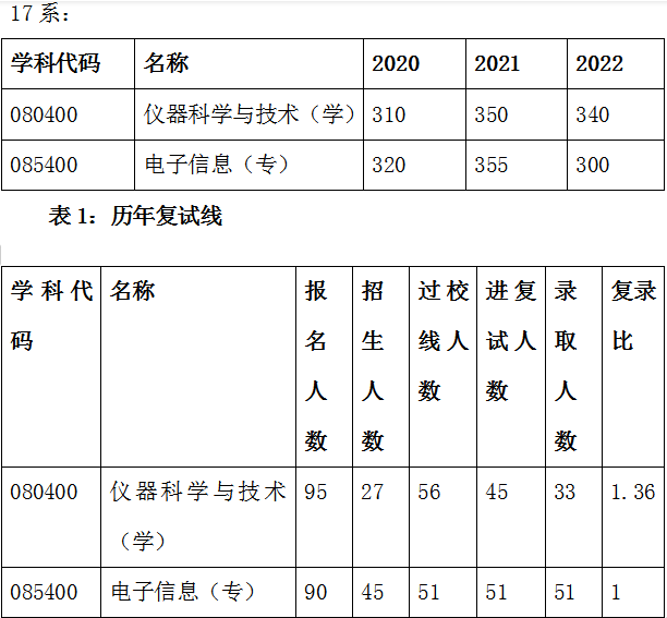 (3)招生情况:17系和43系仪器类学硕考试科目都为数学一、英语一,专硕为数学二、英语一,专业课为871和873,考试科目为871的只可报考光学工程学硕,招生人数较少,因此主要介绍考试科目代码为873的相关方向。