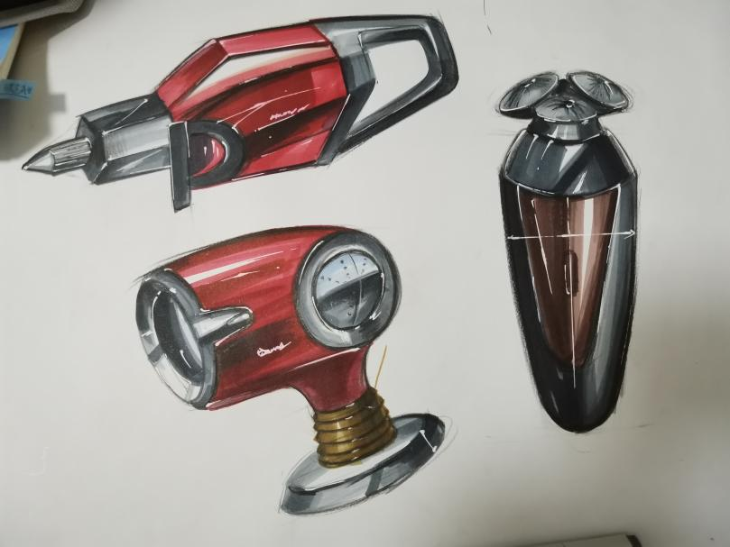 我在整个过程中也进行了大量的练习,这样子才能保证考试四个小时里画完画面。平时我也会去pinterest,花瓣,普象等网站进行好的图片素材收集,这样子有利于我去设计更合理的造型。在后期我也会固定自己习惯的马克笔色号,保证用的习惯,不会花哨。