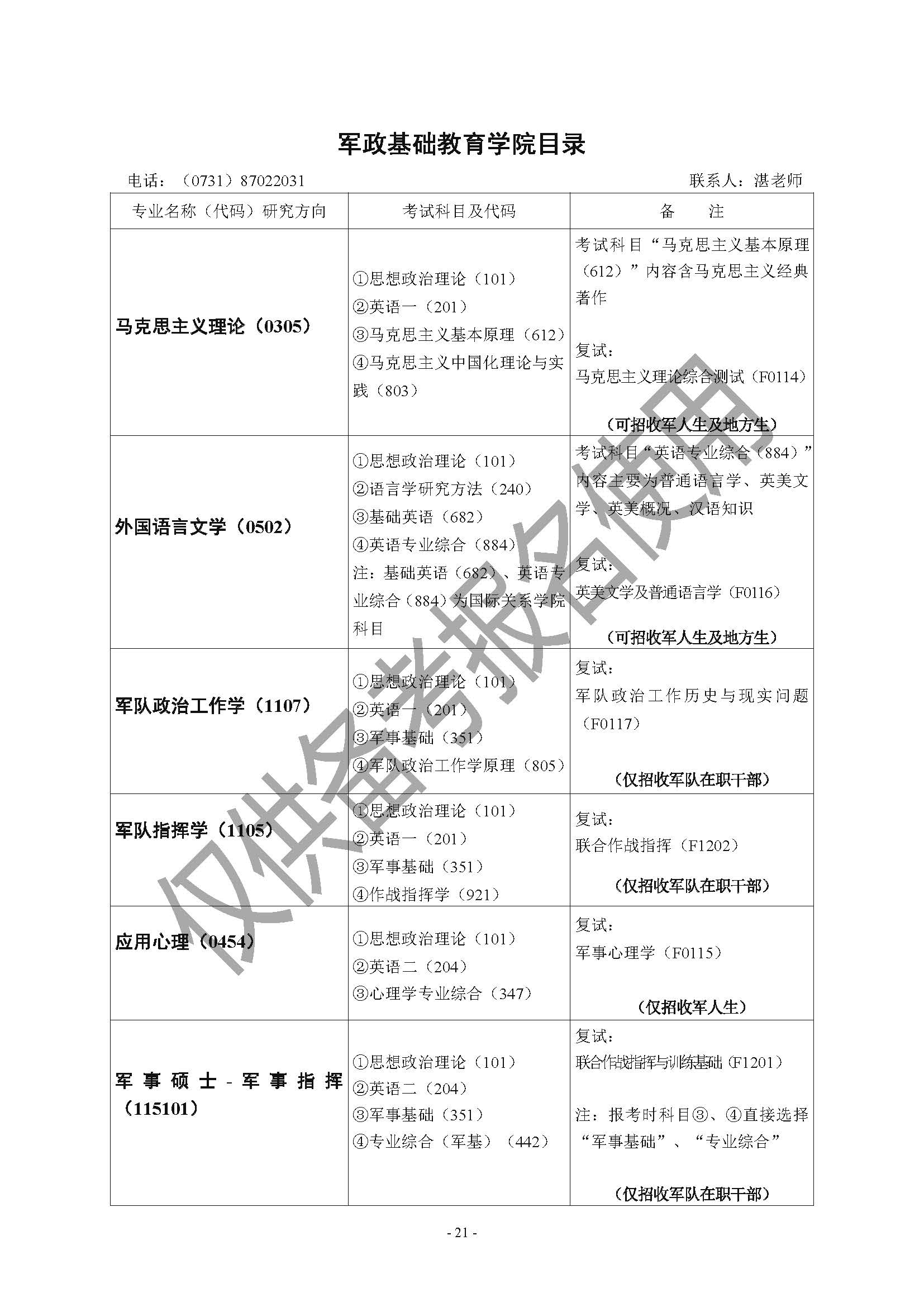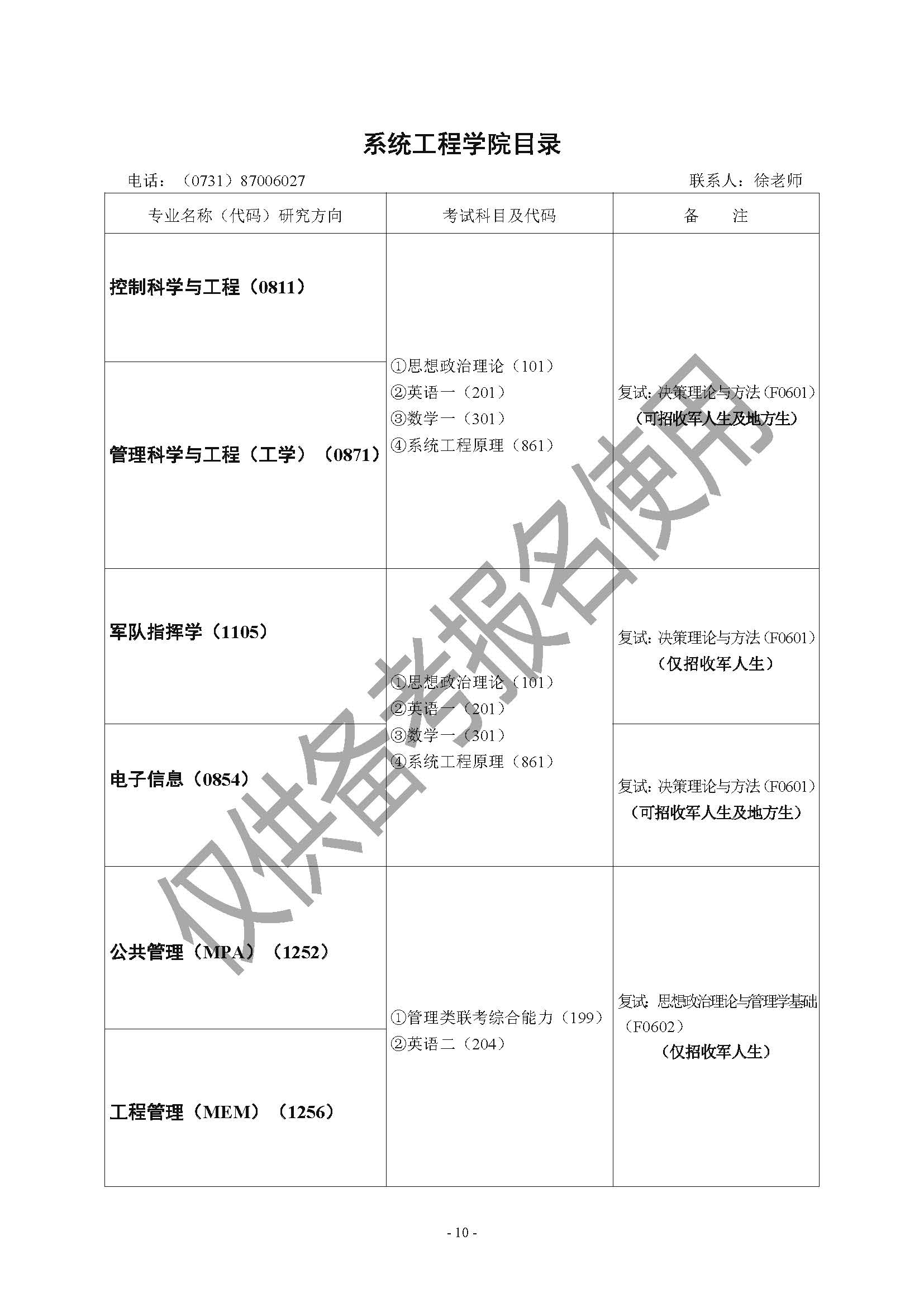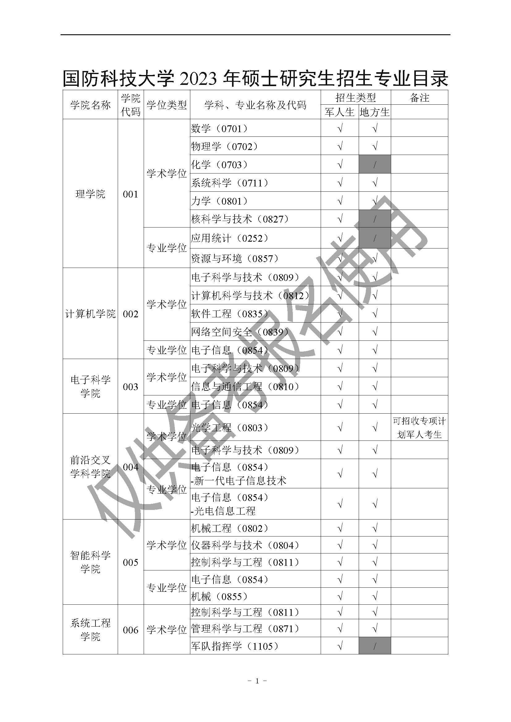 2023年国防科技大学硕士研究生招生专业目录、考试科目