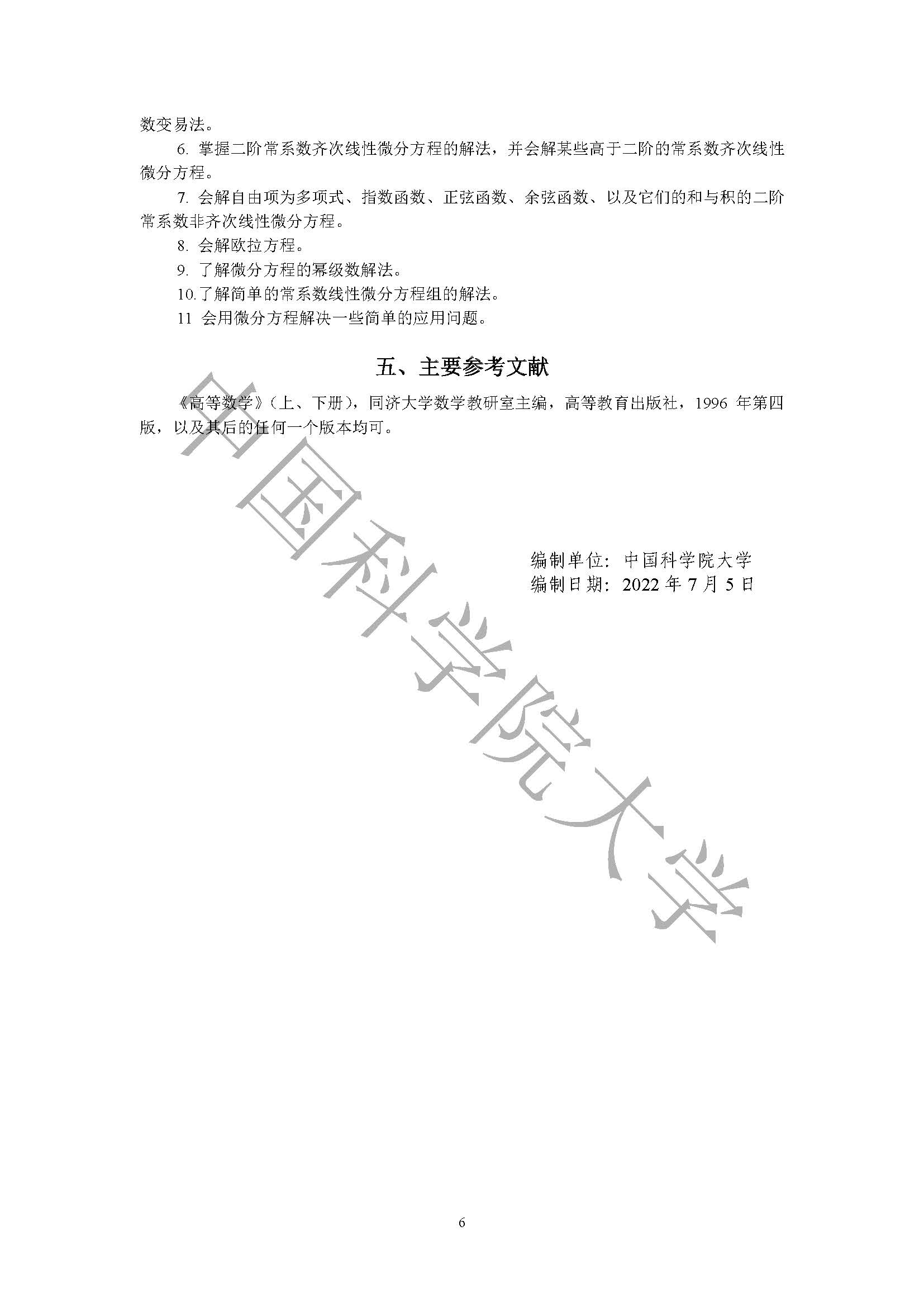 2023年中国科学院大学考研:602高等数学(乙)考试大纲