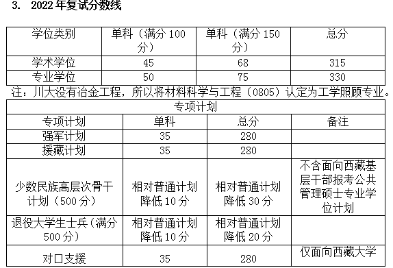 由于疫情,最近几年川大材料院的复试形式为线上远程网络复试,所以不存在笔试,难度较低,具体流程可参考四川大学材料科学与工程学院官网公告-四川大学材料科学与工程学院2022年硕士研究生招生复试通知:https://mse.scu.edu.cn/xygk/xygg/23.htm。复试科目和复试参考书目(书名,版次,作者,出版社,出版年份)见下表: