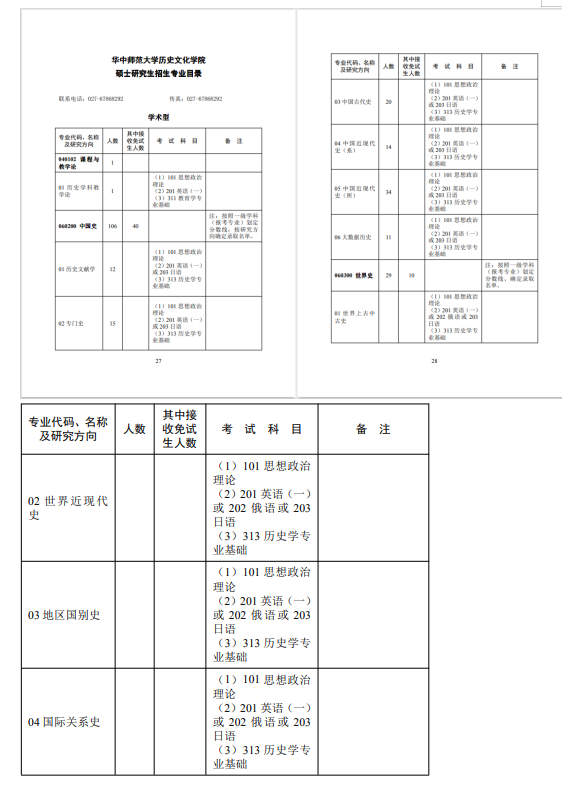 华中师范大学历史学方向招收中国史和世界史学生,其中,招收中国史有历史文化学院和国家文化产业研究中心,如图。