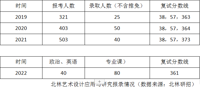 近年来其实无论哪个学校,考研竞争压力都不小,以北林艺术设计专业来说,每年的分数线也持续增长,基本都在360分+,虽然这两年比往年有所扩招,但报考人数增长趋势猛烈,还是有一定竞争压力的。
