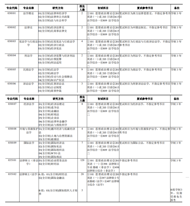 上财法学院学术硕士招录专业有:法学理论、法律史、宪行法学、民商法学、诉讼法学、刑法学、经济法学、环境与资源保护法学、国际法学。所有专业的初试科目是相同的:英语、政治、法学综合一(法理、宪法)、法学综合二(民法、民诉)。
