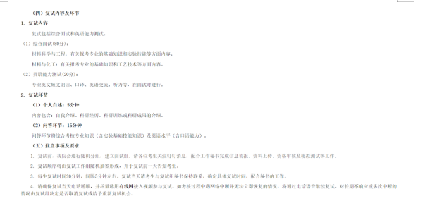 复试经验:由于疫情原因,大概率还是线上复试,综合成绩 = 初试总分/5×70% + 复试成绩×30%。初试占比还是比较大的,初试前10基本上不可能被刷。复试难度相对初试来说不是很大,参考书目虽然有5本书,但是老师问的问题基本围绕毕设,科研经历,本科学习课程,还有材料的测试。复试气氛整体还是比较融洽的,不要太过于紧张,老师们都挺和蔼可亲的,不要有太大压力。