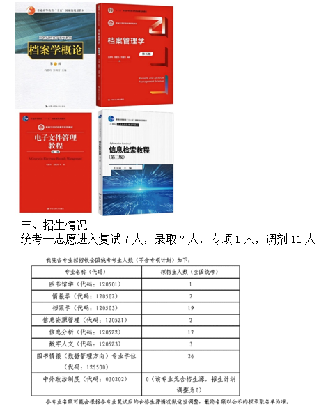 参考书目:《信息检索教程》第三版;《档案管理学》第五版;《档案学概论》第二版;《电子文件管理教程》第二版。