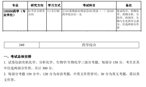 天大药学考研初试专业课为349药学综合,有机、分析、生化三选二,各科为150分,其中30分为英文题。复试科目为药化、药分、生药学、药剂、生物与生化药学五选二,复试采用全英文复试,初试和复试难度均适中。