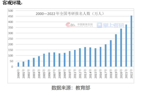 2021年参加考研的人数近377万,较2020年增加36万,增幅10.6%;2022年考研人数更是高达457万,比之21年人数增长率超过20%,在就业环境困难和疫情加持的背景下,考研竞争愈发激烈已成为不争的事实;