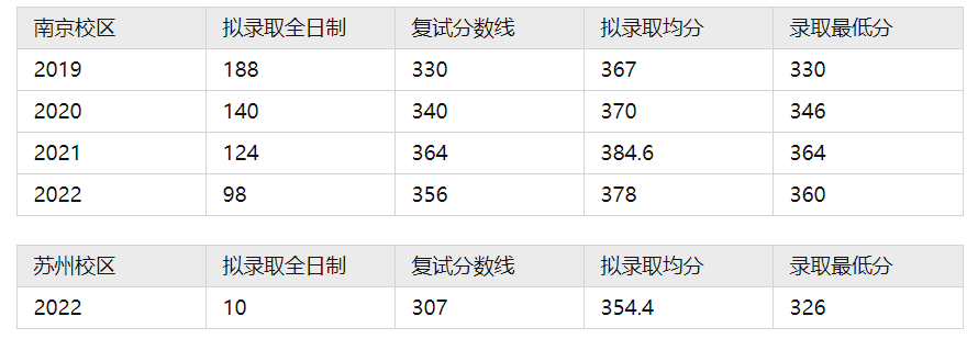 根据招生情况来看,南软的统招名额越来越少(保研的人越来越多),我估计今年统招名额会更少一点。苏州校区是去年刚开的校区,当时传来苏州招生信息的时候,已经快临近考研报名了,所以很多人都没有关注到,也导致苏州校区复试分数线只有307。就今年而言,苏州校区复试分数线肯定会有所上升,希望学弟学妹们报考的时候,慎重选择。