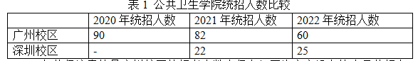 表1公共卫生学院统招人数比较