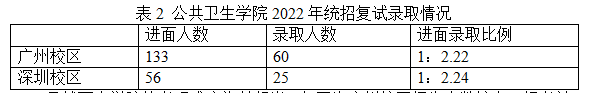 表2公共卫生学院2022年统招复试录取情况