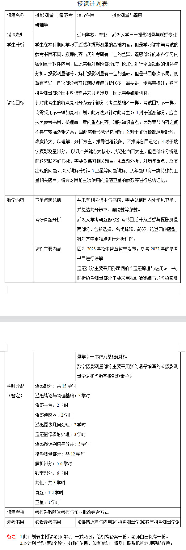 新祥旭考研一对一:2023年武汉大学摄影测量与遥感专业考研一对一辅导授课计划