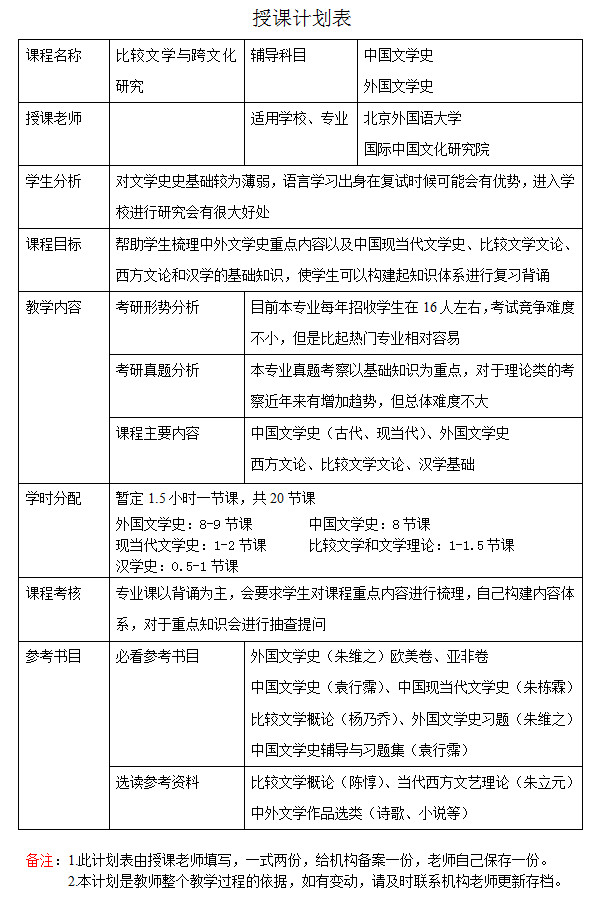 新祥旭考研一对一:2023年北京外国语大学比较文学与跨文化研究考研一对一辅导授课计划