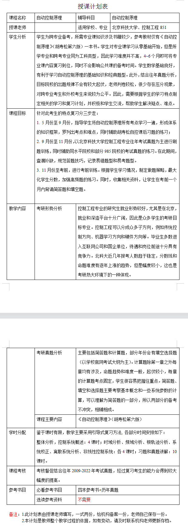 新祥旭考研一对一:2023年北京科技大学控制工程考研一对一辅导授课计划