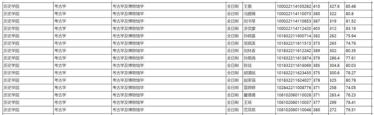 各项复试成绩均合格的,按报考专业(考古学、中国史、世界史、文物与博物馆)的加权总成绩,从高分到低分依序排列,择优录取。