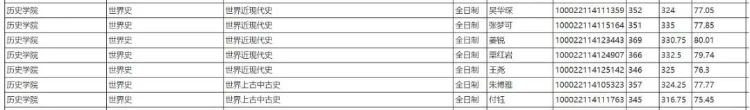 各项复试成绩均合格的,按报考专业(考古学、中国史、世界史、文物与博物馆)的加权总成绩,从高分到低分依序排列,择优录取。