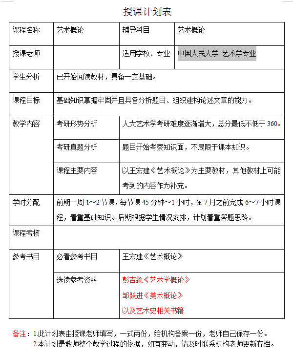 新祥旭考研一对一:2023年中国人民大学艺术学专业考研一对一辅导授课计划