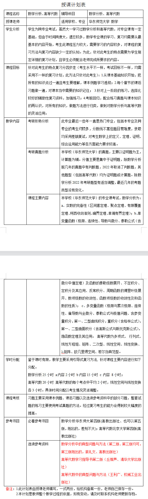 新祥旭考研一对一:2023年华东师范大学数学专业考研一对一辅导授课计划