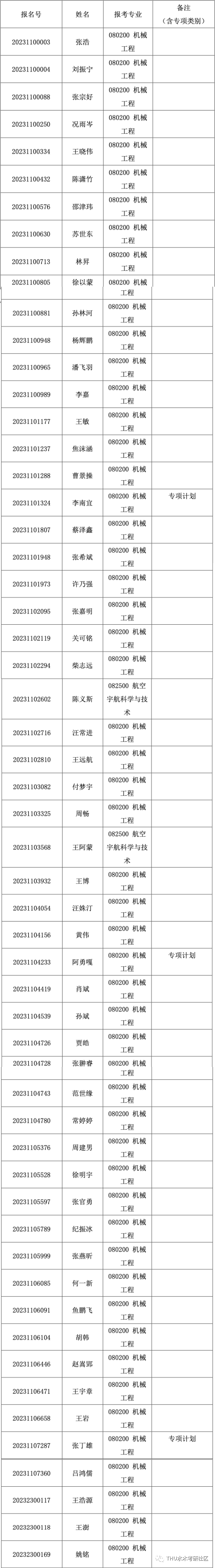 清华大学机械工程系2023年招收公开招考招考博士入围综合考核的名单己确定,现公布如下: