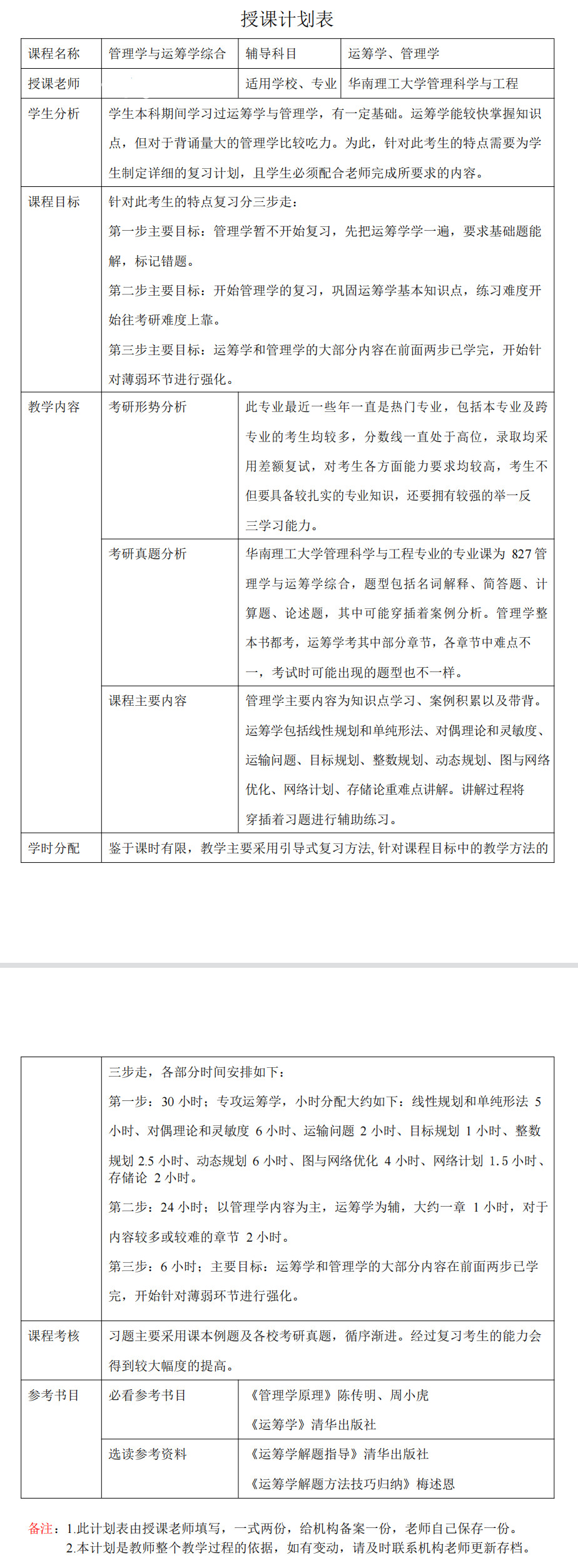 华南理工大学考研辅导班:2023年华南理工大学管理科学与工程考研一对一辅导授课计划