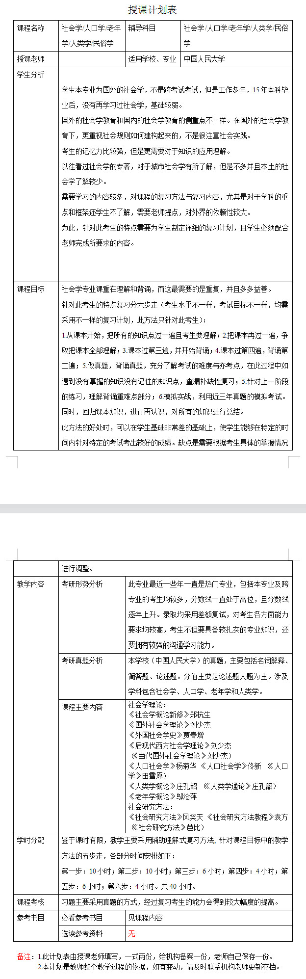 中国人民大学考研辅导班:2023年中国人民大学社会学考研一对一辅导授课计划