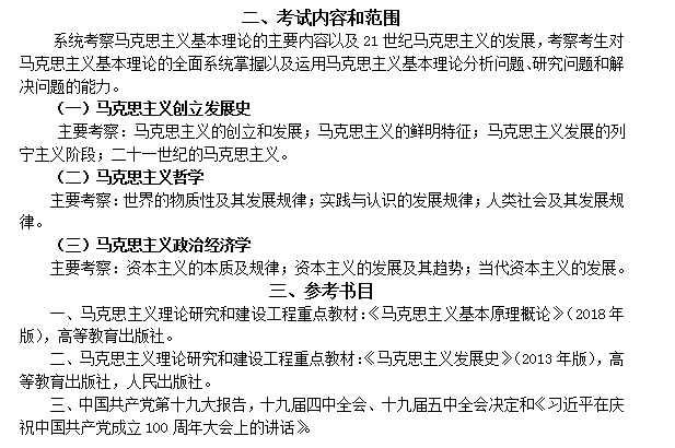 参考书目主要是“马原理”那本绿色的书以及《参考书》;《马克思主义发展史》(今年新加的书,不过考的内容比较简单,明年可能会加点难度)学习能力强的人同学,在书背完之后可以去读一些马恩原著。想了解更多可关注新祥旭陕西考研公号。这门课主要考马克思创立发展史、马克思主义哲学、政治经济学。其中重点的重点,是马克思主义哲学和政治经济学,看书自学可能一开始觉得晦涩难懂,可以去看徐涛网课来帮助理解,如果觉得很难可以选择抄几遍教材加深理解。