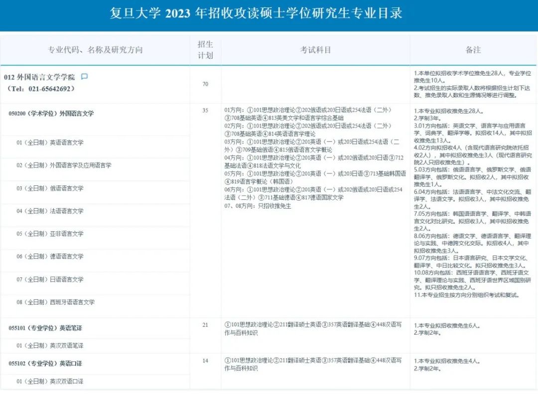 复旦大学考研辅导班:2023年复旦大学外国语言文学学院硕士研究生专业目录