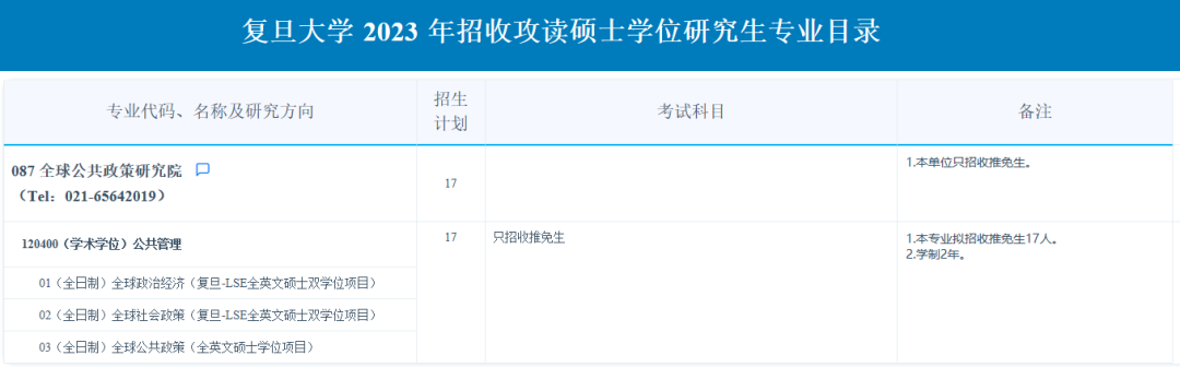 2023年复旦大学全球公共政策研究院硕士研究生专业目录