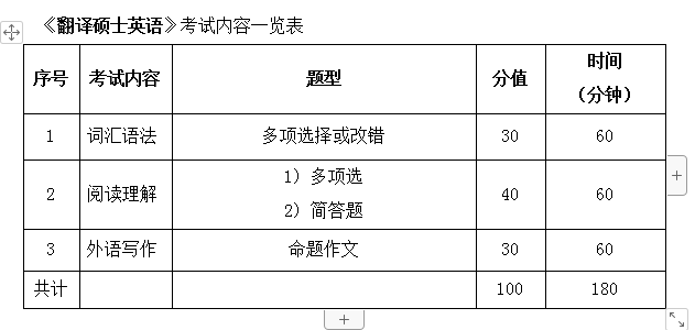 本考试是一种测试应试者单项和综合语言能力的尺度参照性水平考试。考试范围包括MTI考生应具备的外语词汇量、语法知识以及外语阅读与写作等方面的技能。