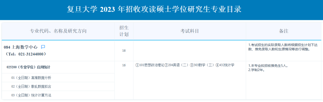 复旦大学考研辅导班:23年复旦大学上海数学中心硕士考研专业目录