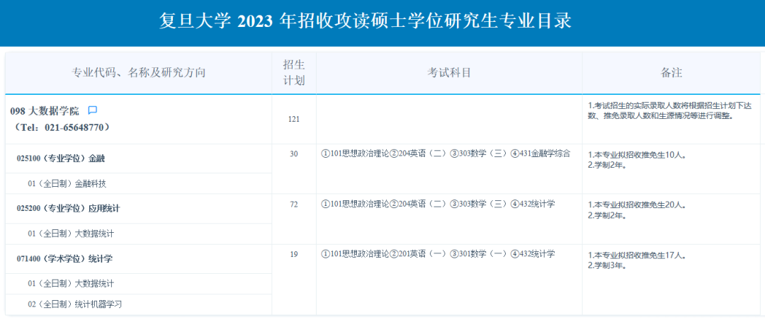 复旦大学考研辅导班:23年复旦大学大数据学院考研专业目录