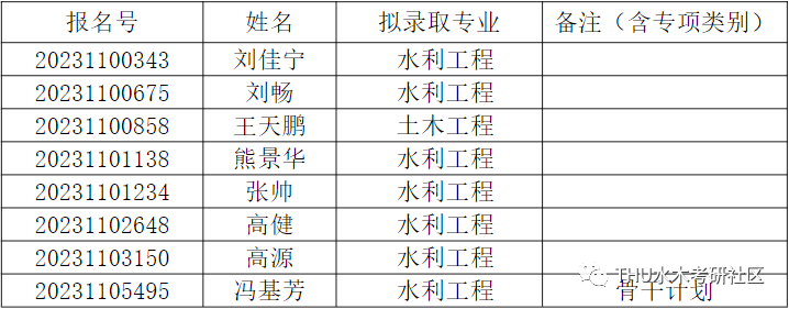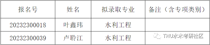 经综合考核和研究生招生工作领导小组讨论,报学校研究生招生工作领导小组批准,清华大学水利水电工程系2023年接收推荐免试直博生拟录取名单,现已确定,现予以公示。