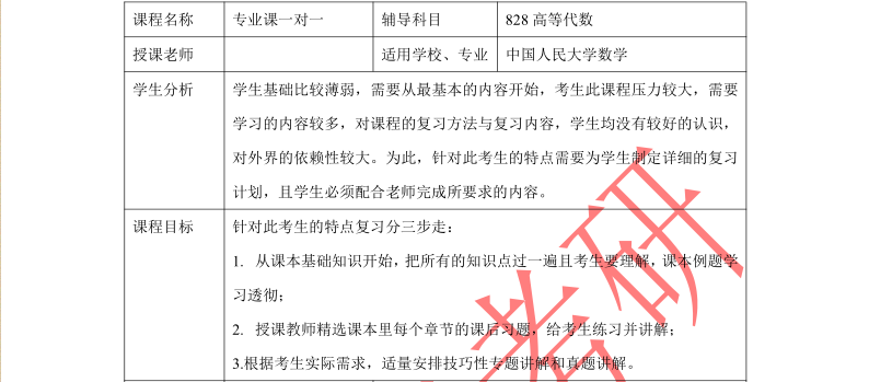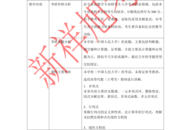 中国人民大学数学(828高等代数)专业考研必看参考书目、真题分析、考研趋势、复习规划、授课计划汇总