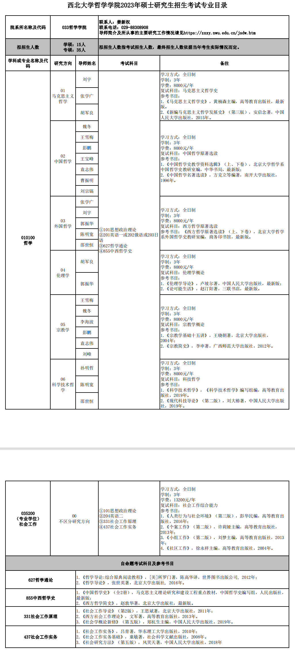 西北大学考研辅导班:2023西北大学哲学学院硕士招生专业目录及参考书目