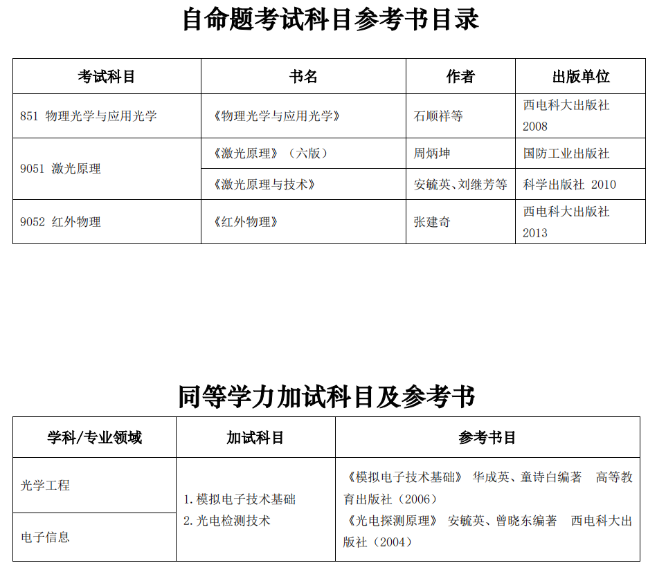 西安电子科技大学考研辅导班:2023西安电子科技大学光电工程学院考研各专业参考书汇总