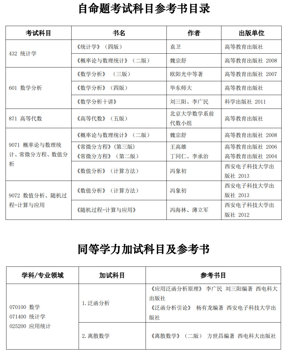 西安电子科技大学考研辅导班:2023西安电子科技大学数学与统计学院考研各专业参考书汇总