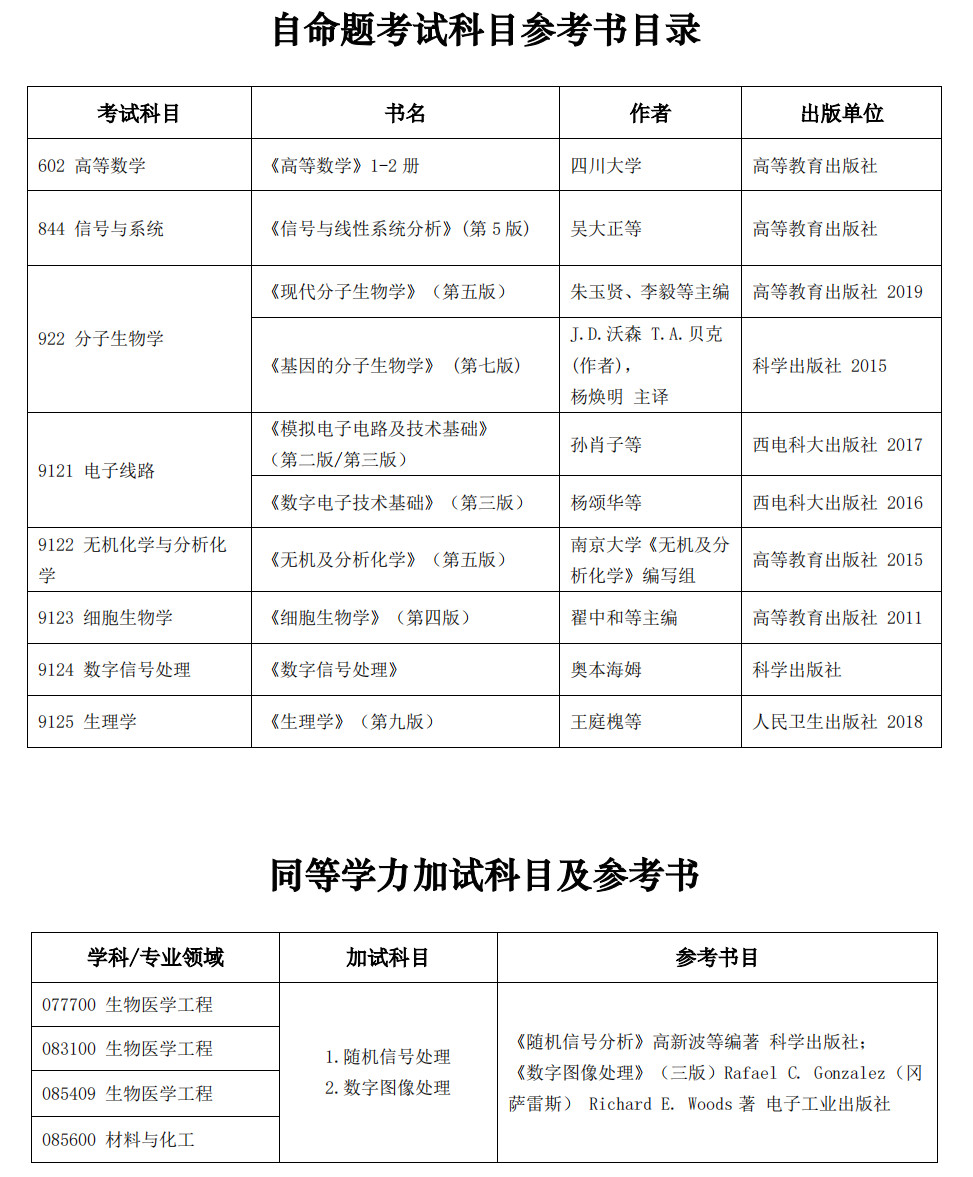 西安电子科技大学考研辅导班:2023西安电子科技大学生命科学技术学院考研各专业参考书汇总