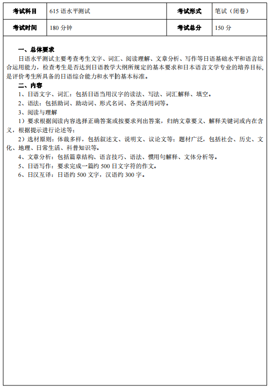 新祥旭考研:2023年电子科技大学硕士考试大纲(615 日语水平测试)