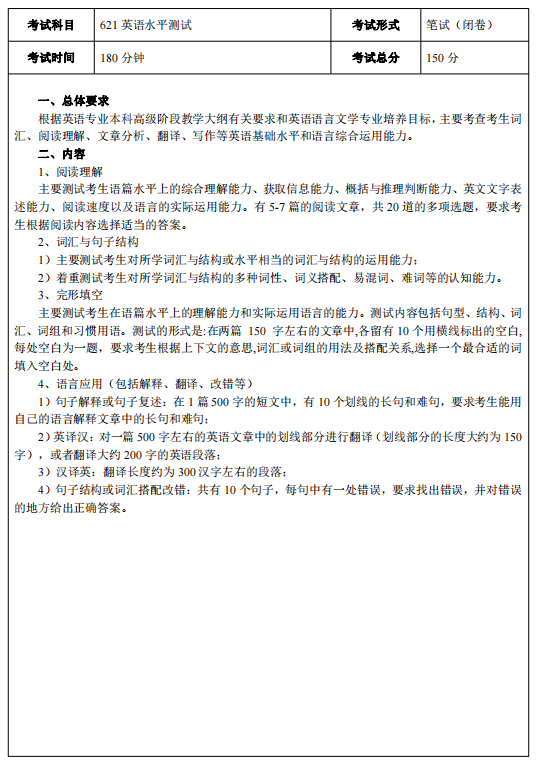 新祥旭考研:2023年电子科技大学硕士考试大纲(621 英语水平测试)