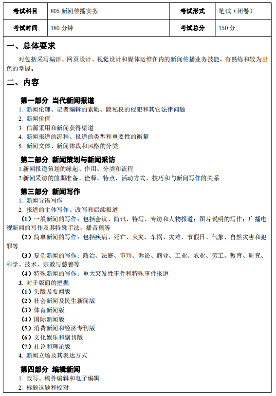 新祥旭考研:2023年电子科技大学硕士考试大纲(805 新闻传播实务)