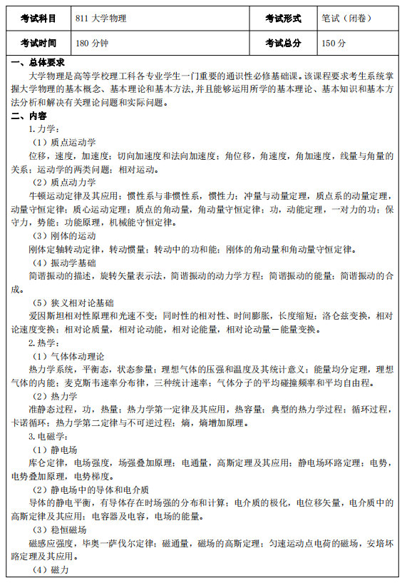新祥旭考研:2023年电子科技大学硕士考试大纲(811 大学物理)