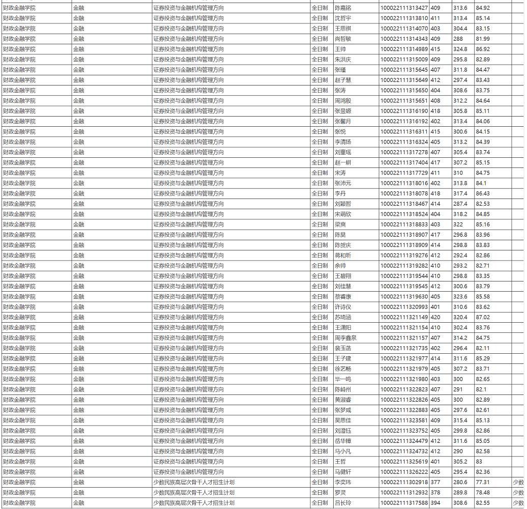 人大金融专硕有两个学习校区:北京的财政金融学院和苏州的国际学院。两个学院的考试内容一样,一般而言国际学院的分数线会比财政金融学院稍微低一些。近年来分数线大致如下: