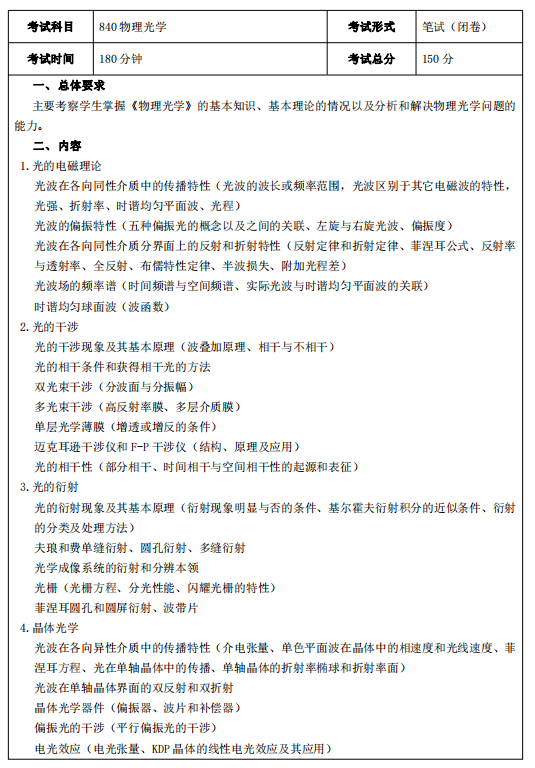 新祥旭考研:2023年电子科技大学硕士考试大纲(840 物理光学)