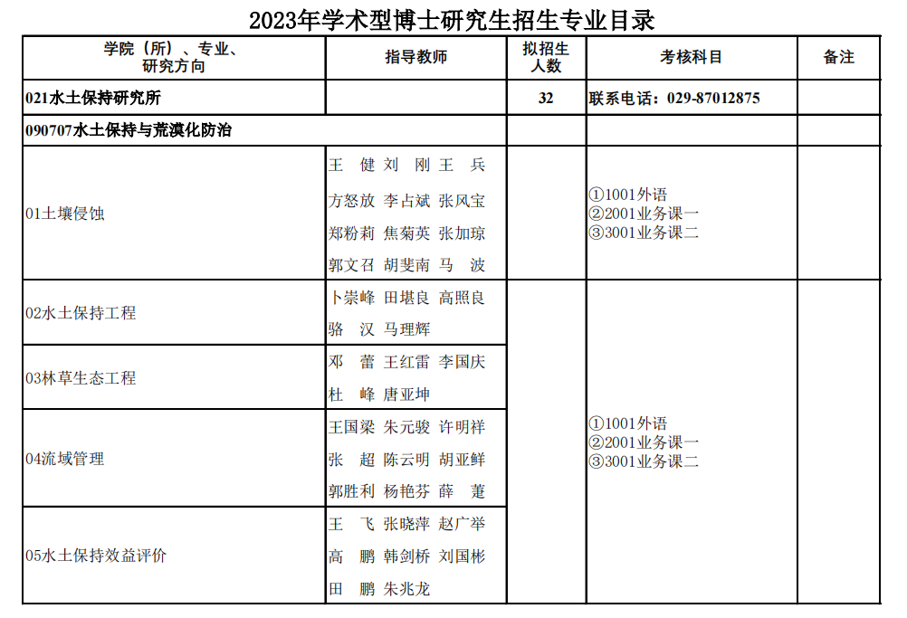 新祥旭考研:西北农林科技大学23年水土保持研究所博士研究生招生专业目录