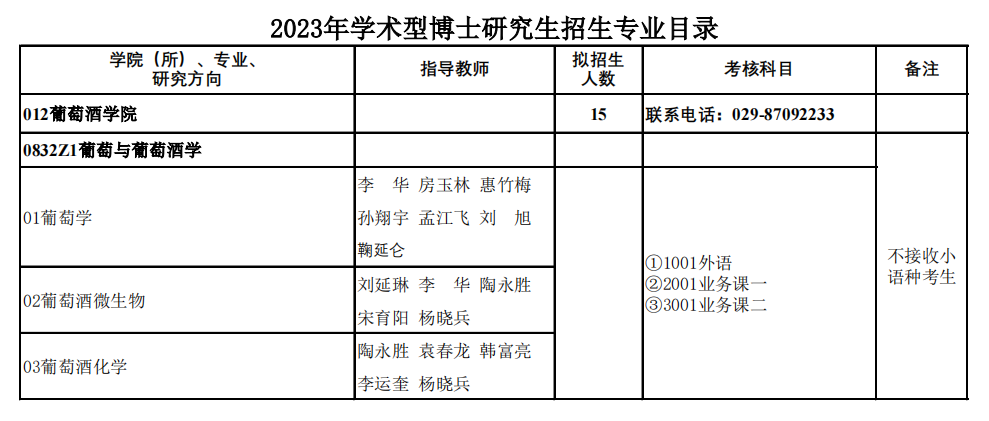 新祥旭考研:西北农林科技大学23年葡萄酒学院博士研究生招生专业目录