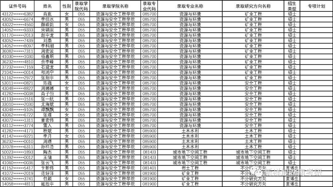 2023年中南大学资源与安全工程学院拟录取推荐免试研究生名单公示
