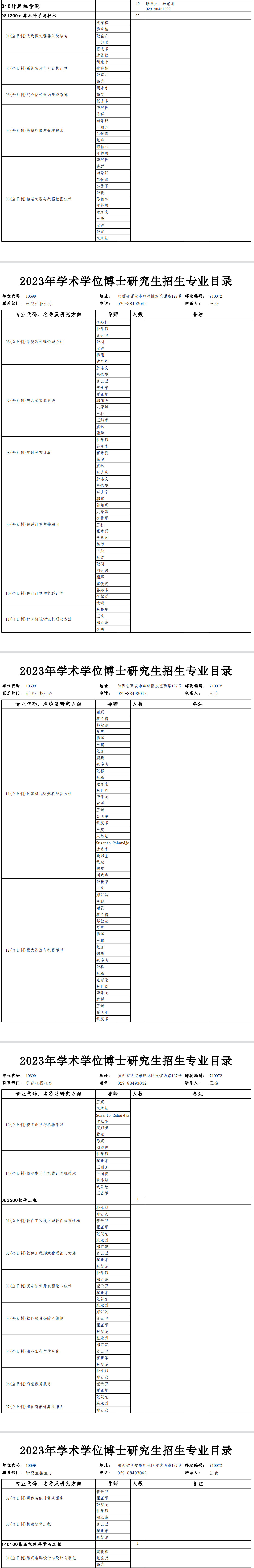 西北工业大学2023年计算机学院学术型博士研究生招生专业目录