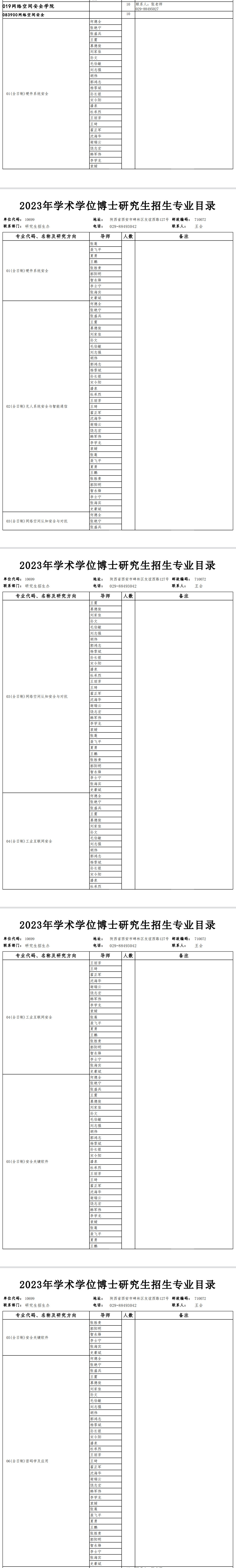 西北工业大学2023年网络空间安全学院学术型博士研究生招生专业目录